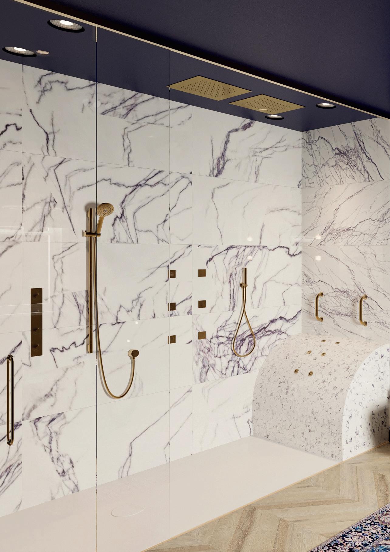 ‘How about slipping out of those wet things and into a dry Martini?’ wrote Noel Coward. In our very generously proportioned walk-in shower there’s more than enough room for several to enjoy drinks and anything else that springs to mind! Every detail in this room has been considered, a curved heated seat in the shower with strategic handles and water jets and a huge rainfall shower head, or you and a friend can play in the see-through resin bath.